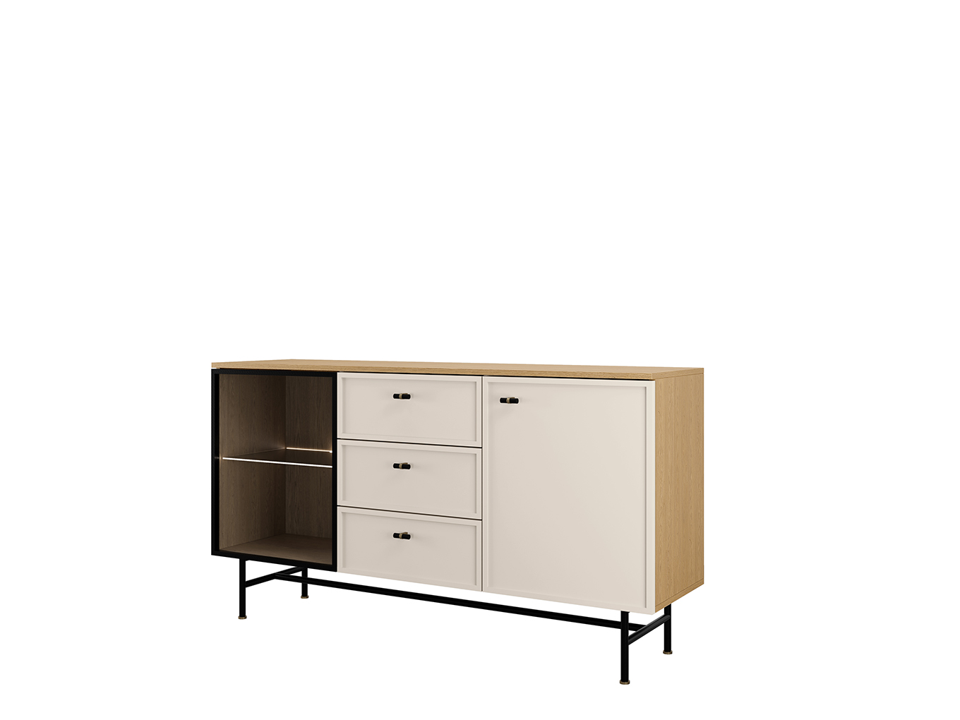 Elora 7 - Komoda duża szkło dąb wiosenny / macadamia LED